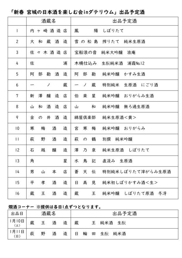 「新春!! 宮城の日本酒を楽しむ会 in DaTeRIUM」について